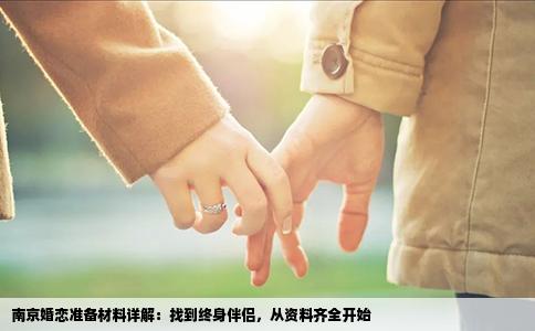 在南京市滇圆寻找一个终身伴侣的过程中,想要取得更好的结果和成功,准备齐全的资料是不可或缺的一环。本文将详细介绍在婚恋过程中需要准备哪些材料,以及这些材料的重要性。婚恋准备所需材料1. 身份证明:包括身份证、户口本等有效证件,用以证明个人身份和户籍信息。 2. 学历证明:包括学历证书、学位证书等,用...