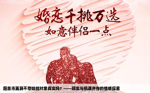在当今社会,离异不带娃的人群在寻找新伴侣的过程中,面临着各种复杂的情况和挑战。阳泉市作为一座城市,同样存在着这样的现象。阳泉市离异不带娃找对象是否真实存在呢?本文将围绕这一问题展开详细的探讨。 在阳泉市,随着社会的发展和人们观念的转变,离异不带娃的现象逐渐增多。对于这部分人群来说,寻找新的伴侣成为...