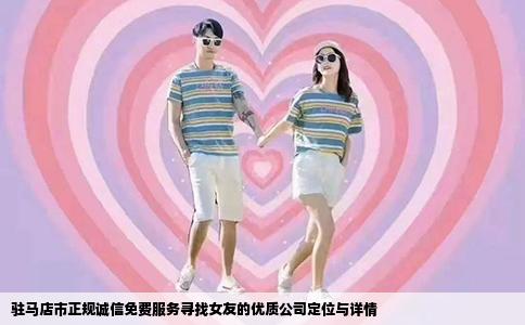 关于驻马店市不收钱找女朋友公司,随着现代社会人们交友观念的改变和科技的发展,寻求伙伴关系的渠道日益增多。对于在驻马店市想要寻找女友的单身人士来说,是否能够找到一家诚信、正规且不收费的服务公司成为了大家关注的焦点。需在驻马店市确实存在一些以提供免费服务为特色的社交公司或平台,这些公司或平台通常以帮...